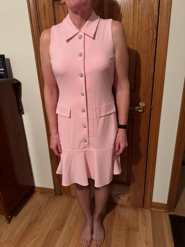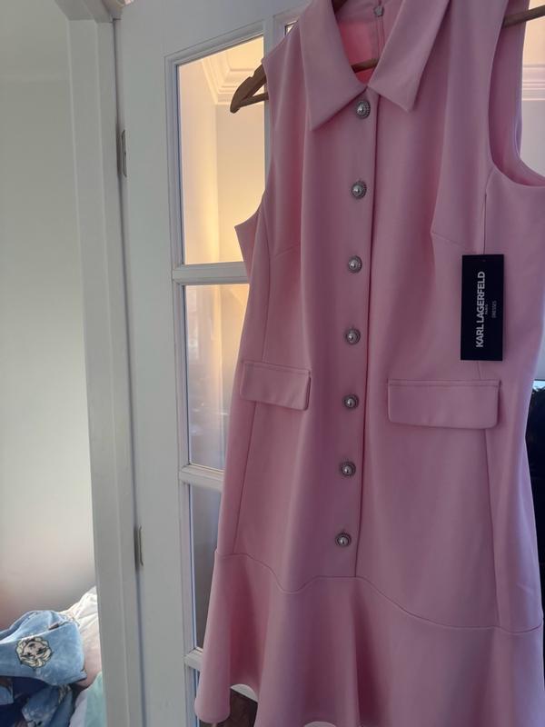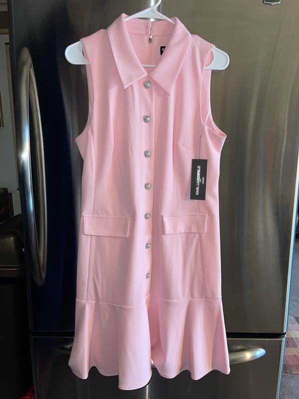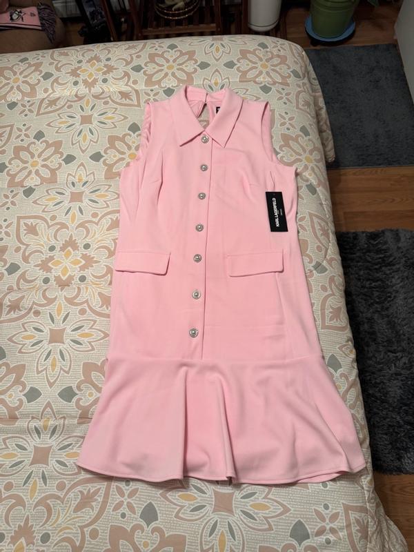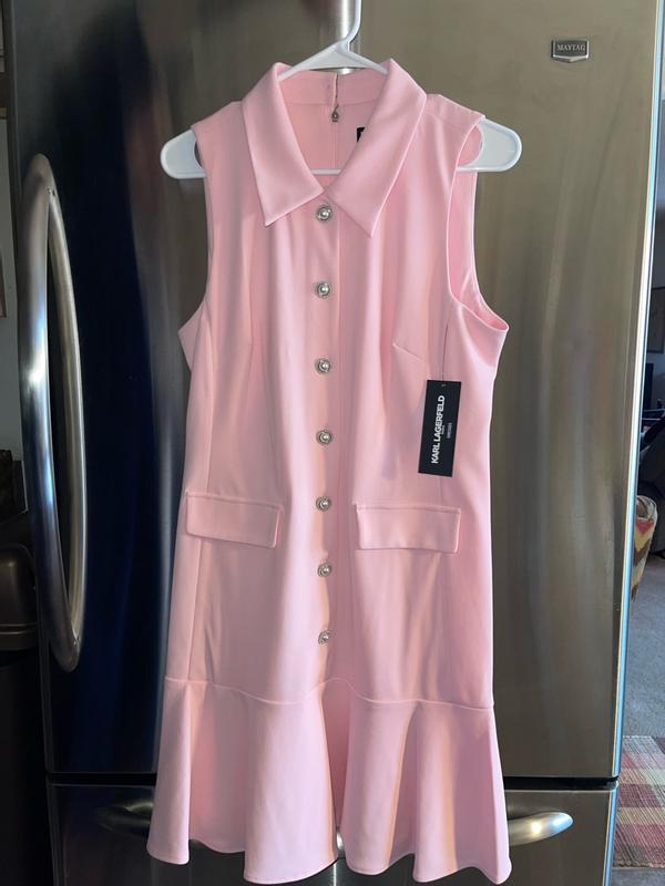 I’ve always dreamed of owning a Karl Lagerfeld Paris Dress. This beautiful pink, sleeveless, Flounce Hem , Pearl button dress is perfect. The sizing is perfect, and it fits great in all the right places. I love the inner lining to help with not seeing through the dress in bright light. I have a few events I plan on wearing this dress to. The material is very top quality and comfortable. Even the zipper has the Karl Lagerfeld logo on it. I hand washed it and hung it to dry to protect those beautiful buttons. I can’t get over how stylish and young I feel in this beautiful dress.