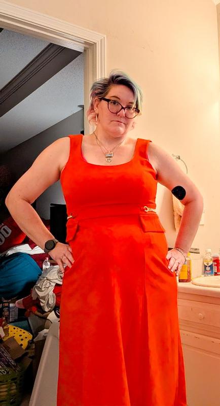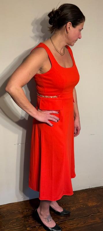 It’s a really well made dress, seriously nice quality. It was just too big on me and not really my style. Color is a warm red, which is not my best color.