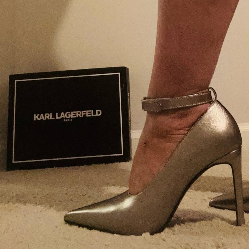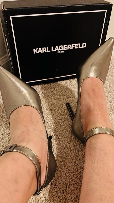 Sury Ankle Strap pumps by Karl Kagerfeld looks better in person than pictures, the color goes well with pretty much any outfit, for a polished casual to dress up. I have wide and flat feet and it fits comfortable even being new, and it is true to size. Once it fully breaks in, the material will become more flexible, which will be great to wear for longer periods. The heels are the right height for me, as it gives the extra height but still allows me to keep my balance. Very happy with these pumps!