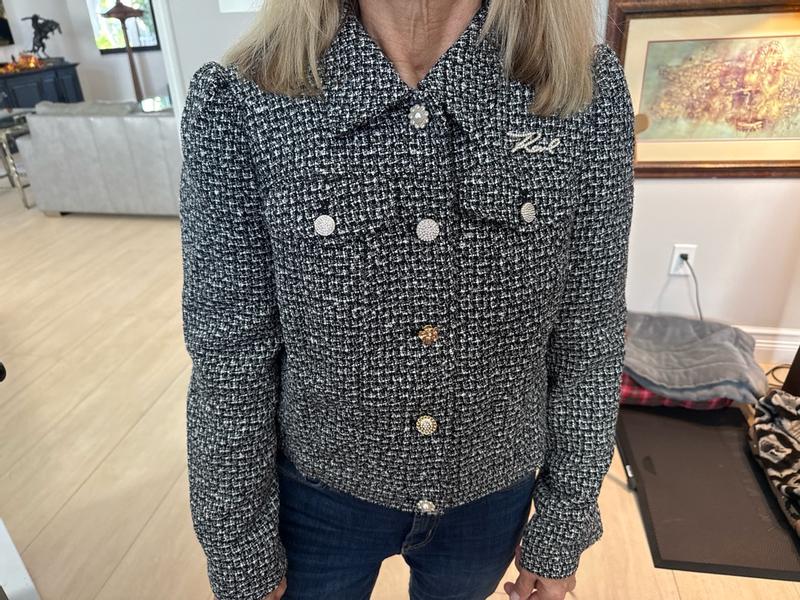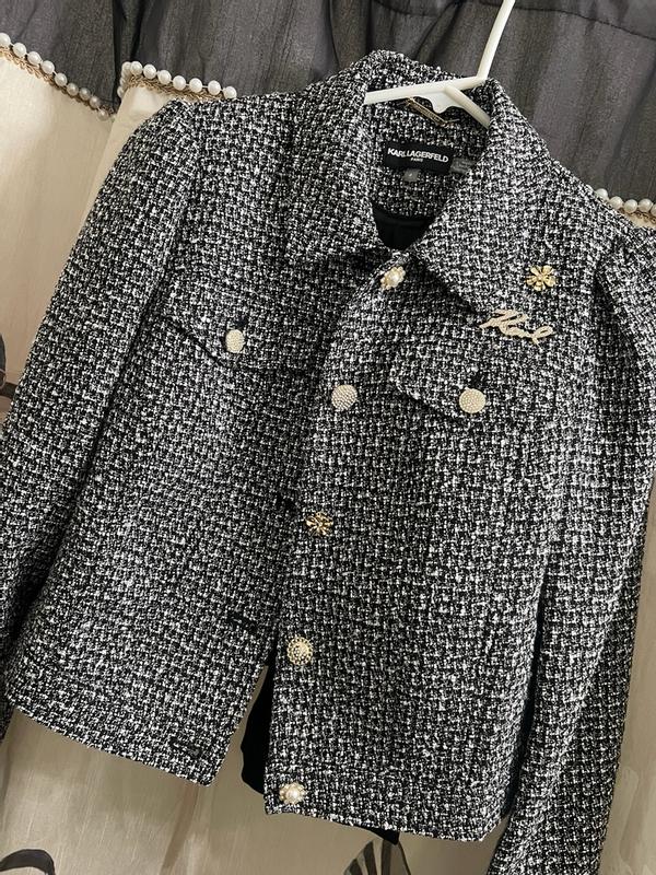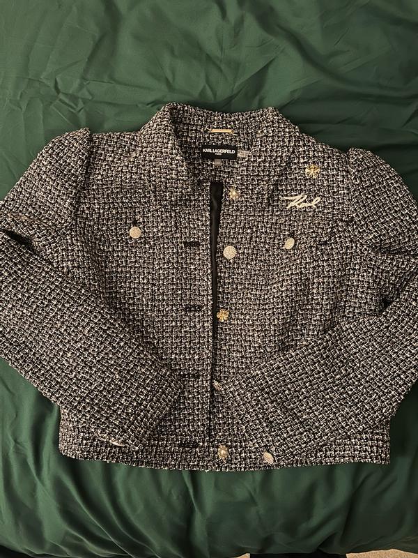 I’m a huge fam of Karl Lagerfeld clothing and look at this! This tweed jacket is amazing. True to size, the color, pattern, shining buttons and designs they all came out beautifully and I am obsessed! Looks high fashion, luxurious brand jackets. I’m loving it!