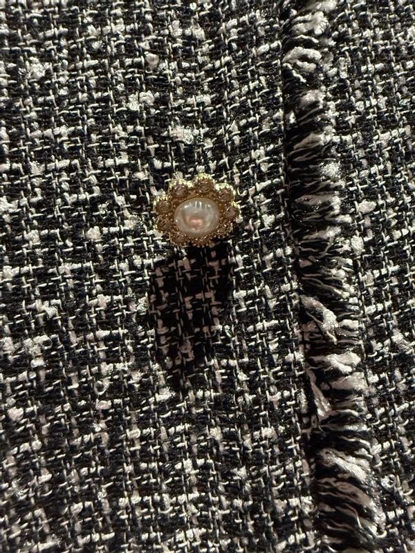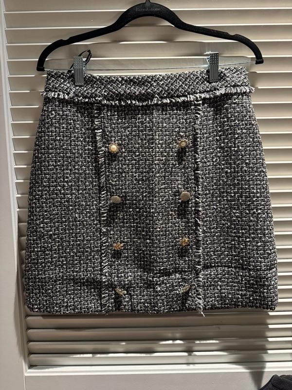 This is a cute skirt although i found it a hard to style without the matching jacket. Fabric is nice and thick but synthetic feeling. I got a size 2. Sizing is accurate, maybe a touch roomier than average. The pearl buttons with gold detailing adds a touch of festivity, may be good for a holiday party. Overall, a fun item to have in my wardrobe but not a staple I wear over and over.