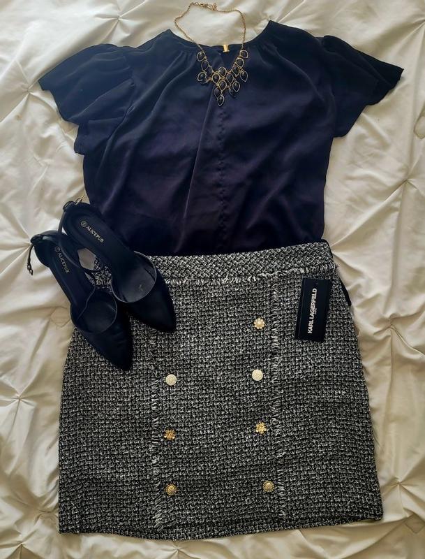 This Karl Lagerfield Paris Tweed Skirt is incredibly comfortable to wear! I love how soft yet structured the skirt actually is, it is easy to style and is amazing for business casual or regular wear! I do wish the skirt was a little bit shorter and not as long but it is still super flattering.