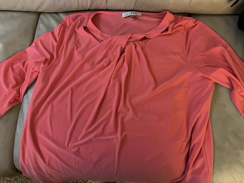 The blouse is fine. However, like other reviewers mentioned, I thought I ordered pink and I received the coral color. Then, I looked at the listing again. Even though the picture shows pink, the listing does not have any color mentioned, like they do on other clothes. So, because the picture was pink, we thought we were ordering pink. However, they sent out whatever color they had because the listing did not have the color specified. My order history shows as if I ordered coral. But the listing of the blouse does not mention the color.