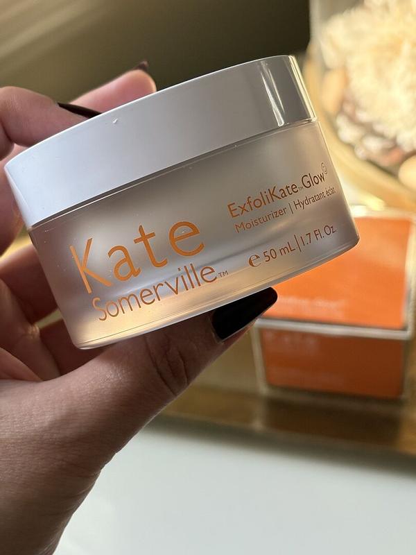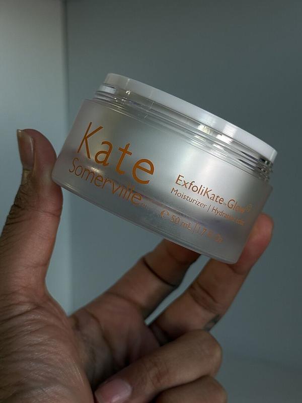 I really love this brand. I have pretty much all the exfolikate products and they just do wonders for my mid 30s combination skin. I always worry about when a product says glow that it will have shimmers but this one is super nice and does not. Its super hydrating, doesn't break out my skin and it absorbs really nicely i do love that it has gentle acids in it so it will gently Exfoliate while moisturizing !!! Goes well with the whole kate Somerville line up. Gifted complimentary from kate Somerville