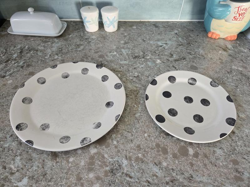 Waited a long time to decide on the perfect set & my decision was perfect. I love these dishes. Microwave & dishwasher safe, the design with the dots always makes me smile.