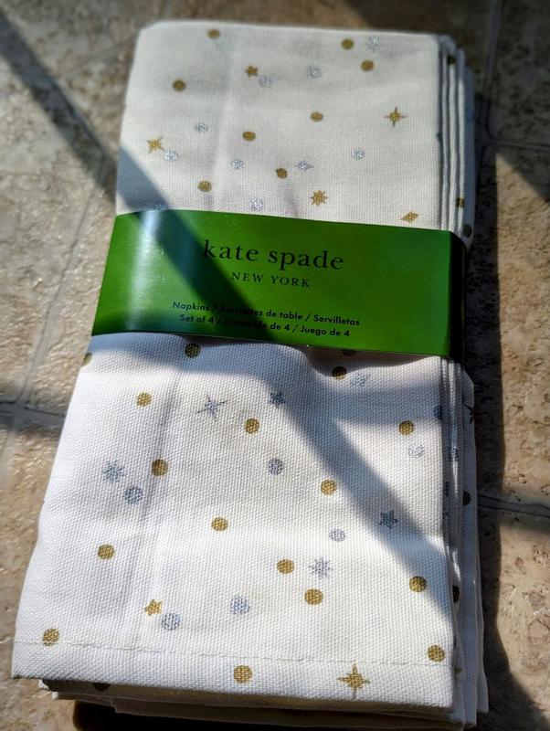These Kate Spade hundred percent cotton napkins are the perfect addition to your holiday dining decor! There are white and gold so it will mash with any theme you have going. They are thick and absorb well!