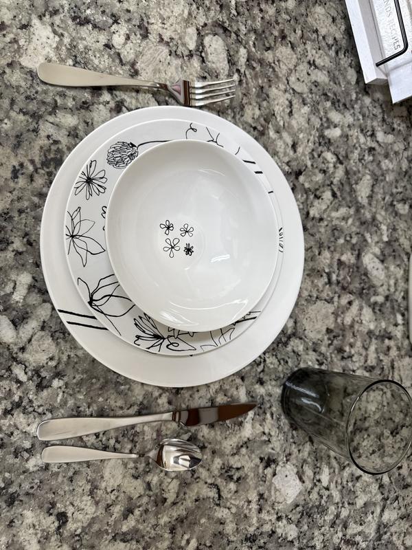 Super cute and fun. The accent plates are larger than most, which is good since I cannot find the dinner plates anywhere. These microwave and do well in the dishwasher. They are lighter than many of the conventional place settings we see in the store today, yet are sturdy. I just wish I could complete my dinner plate settings. The bowls are also larger than a typical cereal bowl which lends well to a decent sized salad. I did not purchase the mugs, as I collect mugs when I travel, but they do pair nicely as noted in the pictures supplied by the company. All in all, a great purchase.
