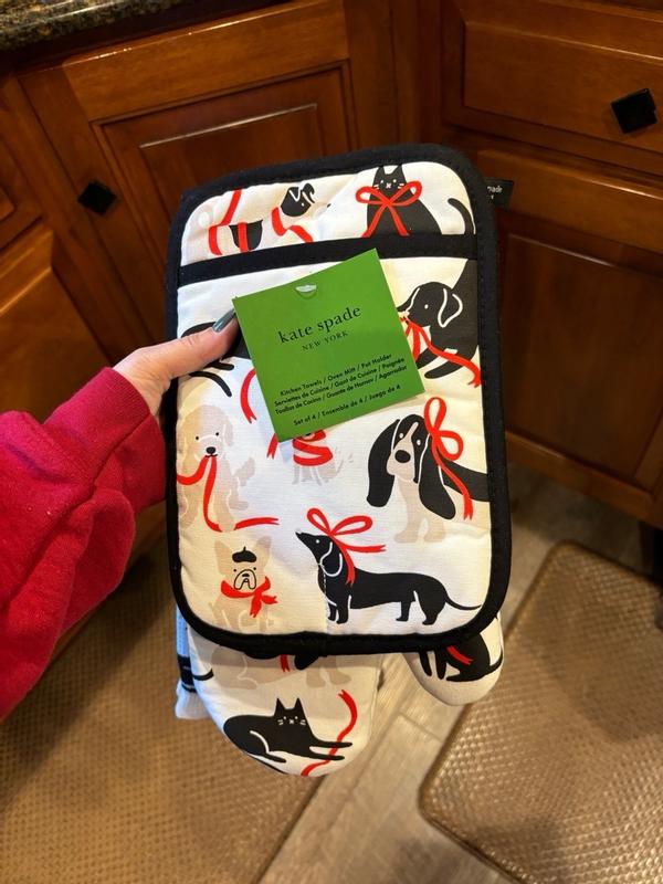 Kate Spade New York Holiday Pets Kitchen Towel Set is so beautiful. It matched perfectly with my kitchen decor. It comes complete with oven mitten, gloves, towels, and pot holder. The material is absorbent and easy to clean.