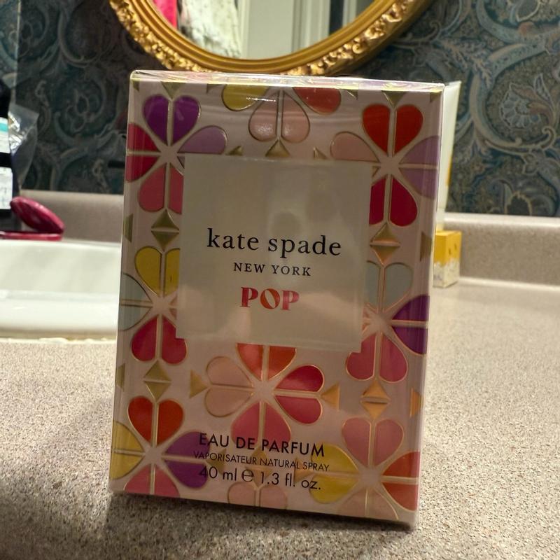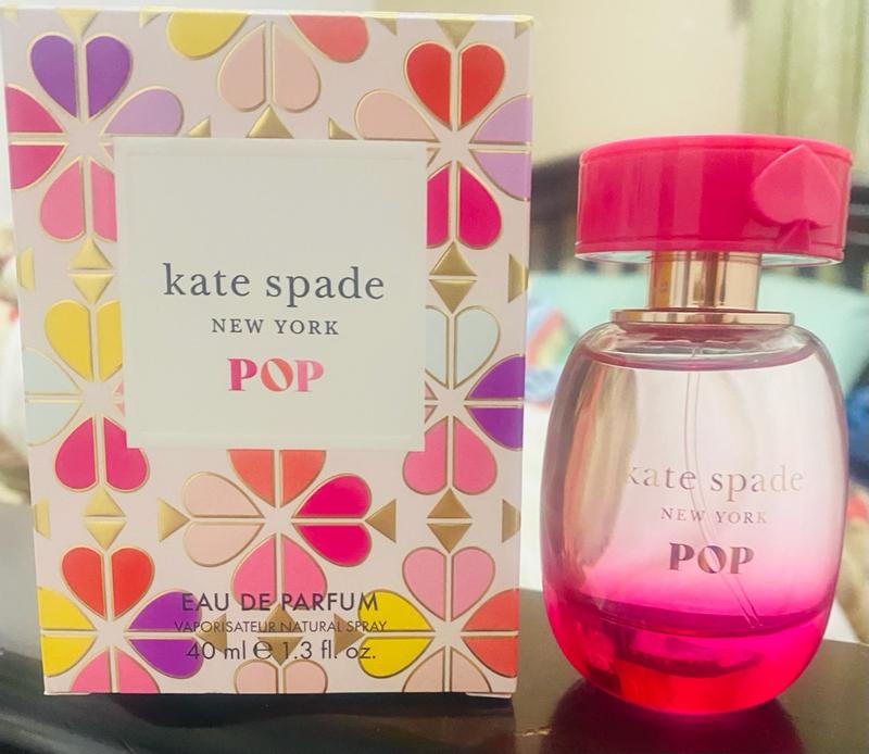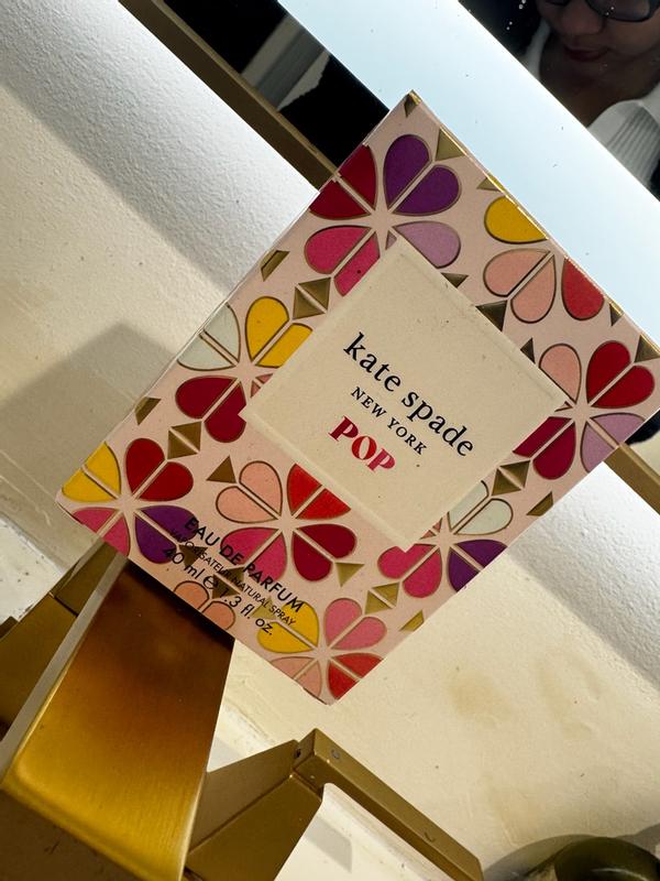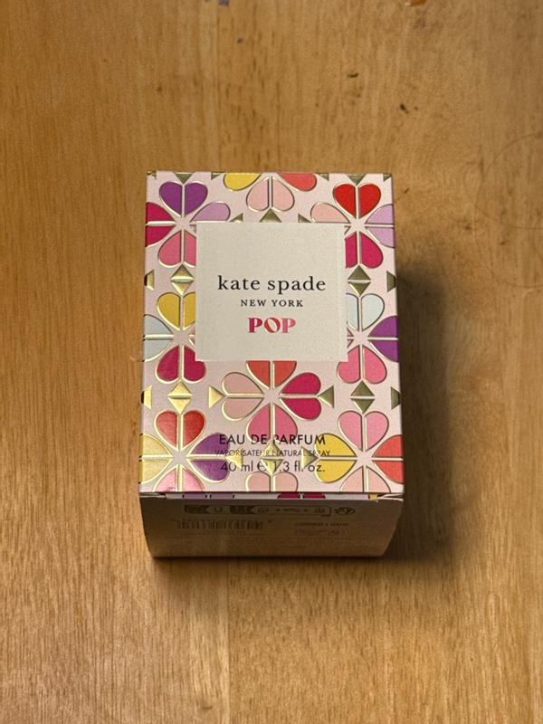 The Kate Spade New York POP Eau de Parfum comes in a charmingly colorful box, suggesting a vibrant and playful fragrance within. Its branding is prominent and stylish, appealing to those who enjoy the brand's cheerful aesthetic. This bottle promises a lively scent, perfect for a joyful, everyday spritz.