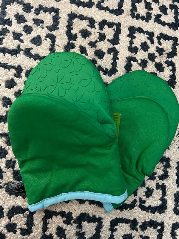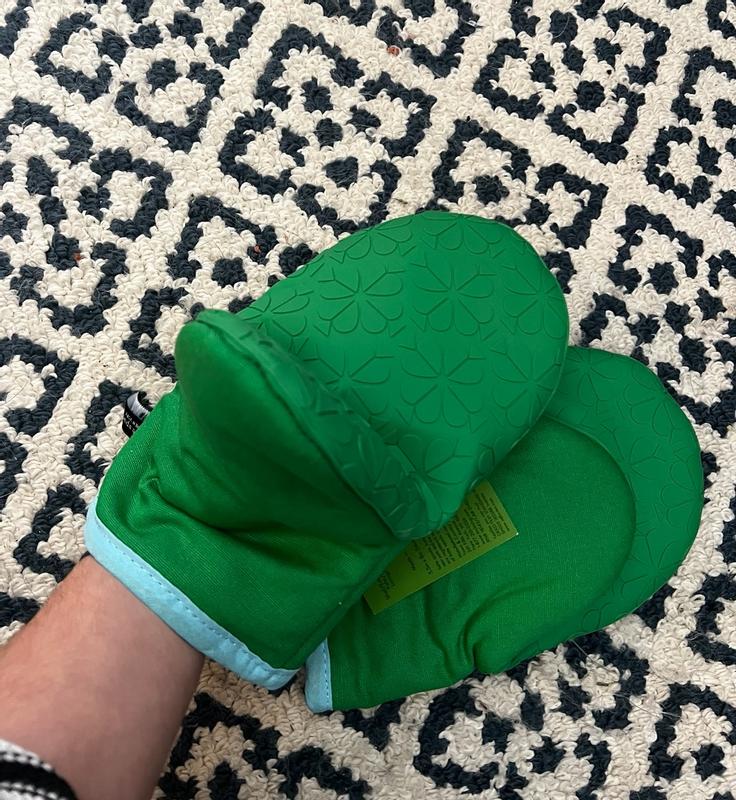 These are such a fun and functional addition to my kitchen! The green and blue color combo is vibrant and adds a pleasant touch to my cooking space. They’re lightweight and durable, with a soft, flexible grip that makes handling hot pans easy and secure. Perfect for quick baking tasks or handling smaller cookware. If you want something cute and practical, these mitts are a great pick.