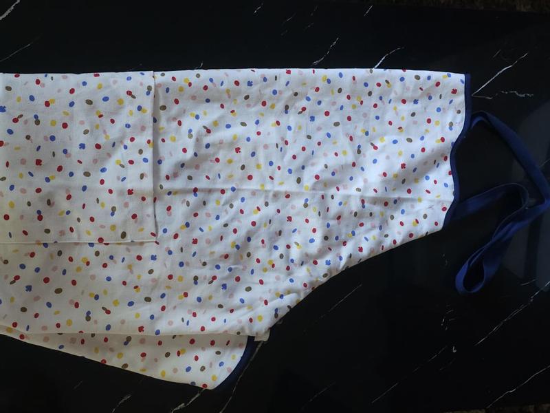 Cute apron. Fun and functional. Well made love the detail and design. Soft but strong. Doesn’t weigh down my neck. Very stylish. Love wearing this. Easy to wash and care for.