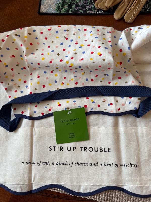 I received the Kate Spade New York Sparkling Congettie Apron with double pockets for my honest review. I actually Love this apron! The confetti print is super cute and fun. It’s made of sturdy cotton, easy to tie, and the pockets are really handy for keeping small things while cooking. Would make for a great gift!