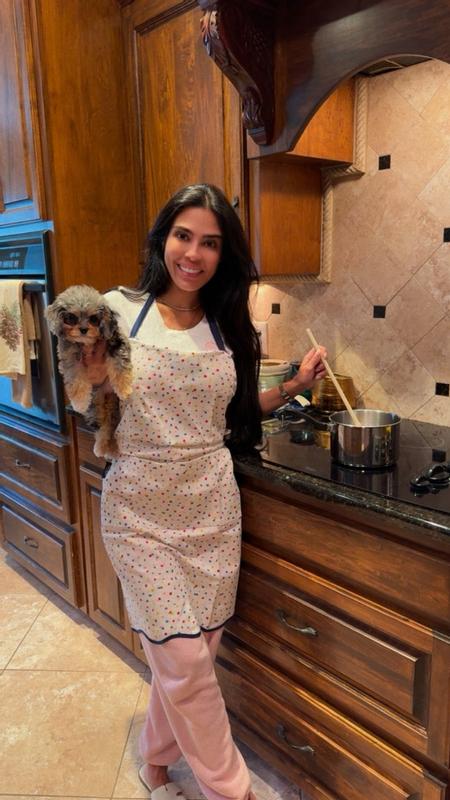 I gave this apron to my mom to try since she’s visiting and spends more time in the kitchen than I do. She instantly loved it! The scalloped edges and little metallic details make it look so elegant, and it’s actually super comfy and durable too. The front pockets are so handy; she keeps saying it’s both pretty and practical!