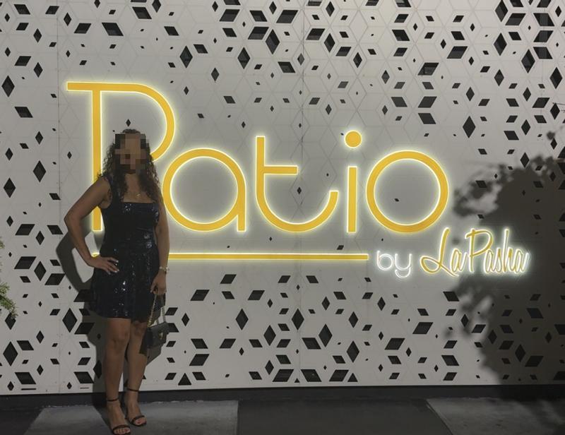 Other occasion to buy:Dark navy blue velvet dress covered with sequin floral shape pattern.