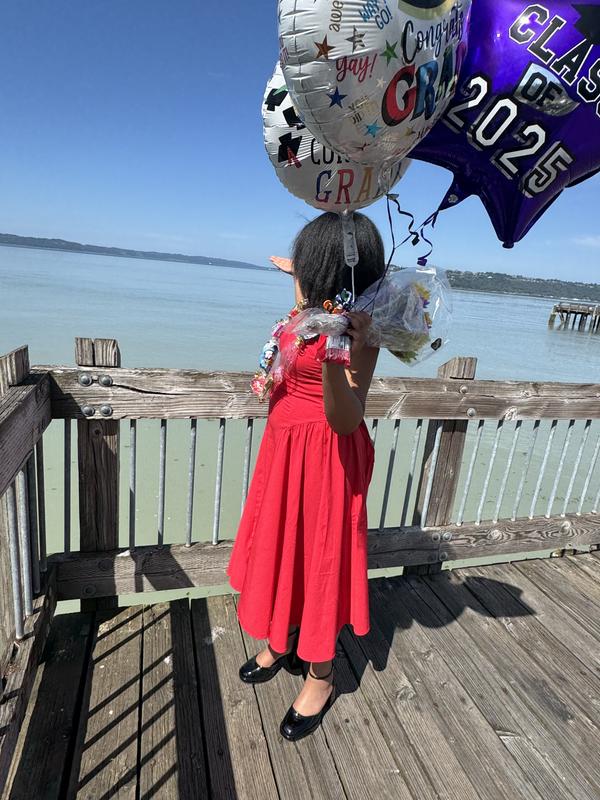 Purchased for my daughter’s 5 th grade graduation this past summer. I loved the fit. Not too mature looking. Went well with her completion. It’s a true red. The length was perfect for her.