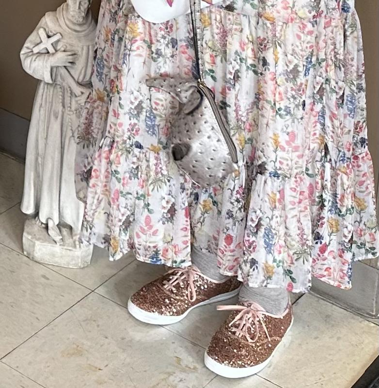 These are so stiff. They are like wearing a wooden box on your feet All that glitter prevents any give to the material it is applied too, so they don't bend. I do not recommend. Can't return mine because I did not get them sent back in time