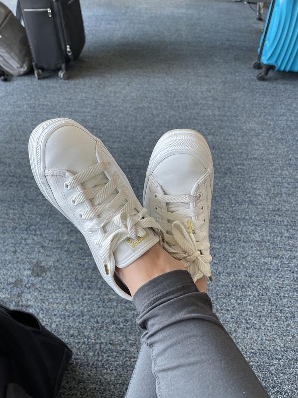 I’ve had my Keds for about 3 weeks now. Bought them to go to go with my cute summer clothes because we were heading to universal studios. First to positives. GOES WITH EVERYTHING! They went will with dresses, skirts with T’s, casual to dressy and cute. They clean easy too. Now the cons. Like some reviews have said the metal lace holes leave black on the shoe and laces. The front sole is already wearing luckily not bad or noticeable. They were not comfortable enough to wear a whole day walking. I switched to my sneakers for the park and long days of walking. They do seem to be getting more comfortable as they break in. Still not enough for miles of walking. But god are these things cute!! Still would buy them again. Some people said they felt they are narrow I disagree but I like a slim fitting shoe. All in all great price for the style and quality.