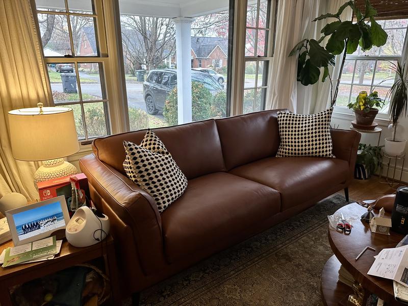 Ordered this sofa on line without seeing it at an showrooma for our living room. Arrived two days ago. First of all, I love the sofa. But more importantly, the delivery was superb. Delivered on time. Crew was sooo nice. Unwrapped and placed sofa where I needed it to be. They put the feet on too. All wrapping was removed by the crew. So far the sofa is holding up but of course it is too early to tell. This is I. A room that doesn’t get much use so I am pretty confident it will last for a while.