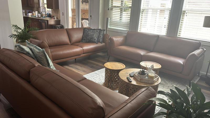 Red flags in quality , make, cushioning . Everything is subpar. The quality delivered is very different than the one in store( I understand that leather is a natural product and can vay). Dimensions are different too, not enough depth or height. Cushions have sagged within 15 days of limited usage. Buyers beware! Please do not buy. If I could give a negative star, I would.