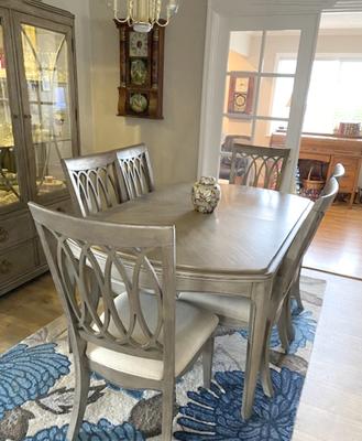 Gorgeous Set!! Loved the professional White Glove delivery at 7:55am when scheduled between 8-10am. I purchased 2 arm / 4 side chairs. Wish I had purchased the buffet or china cabinet. This Kelly Ripa Haley is made of Acacia veneer wood which makes this a sturdy piece of furniture.