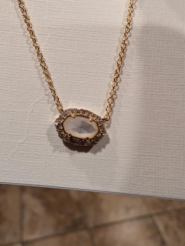 Online order, wish I saw it in person before purchasing. Pretty little necklace, but way too short, even with the extender, I think the true measurement is incorrect. Disappointed that it didn't come in the signature yellow gift box. Great sale price, but unfortunately, it was final sale and cannot be returned.