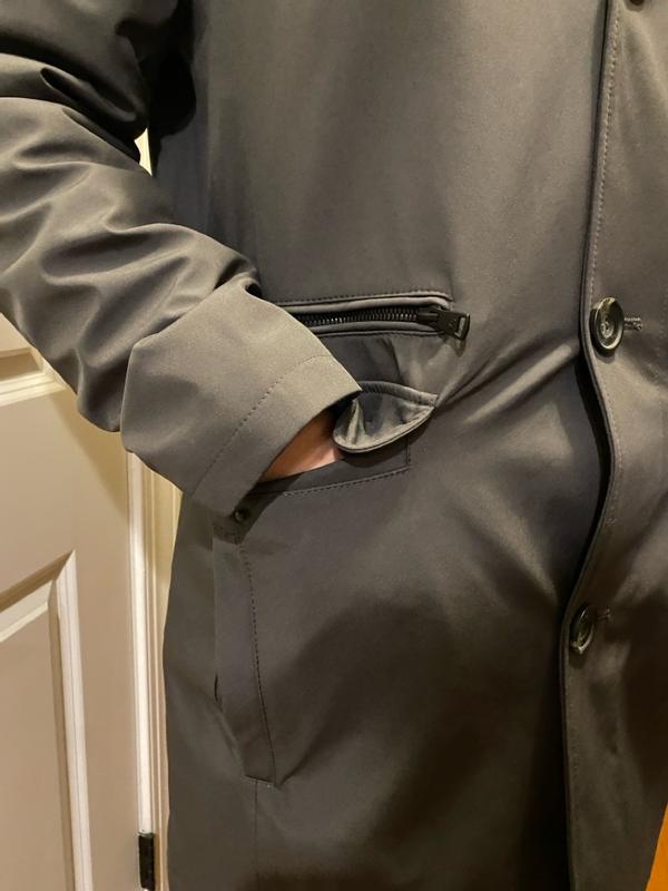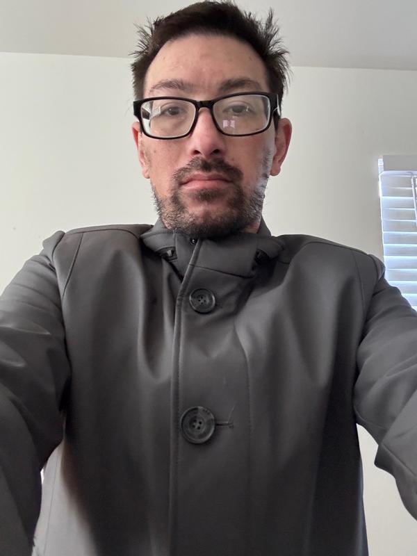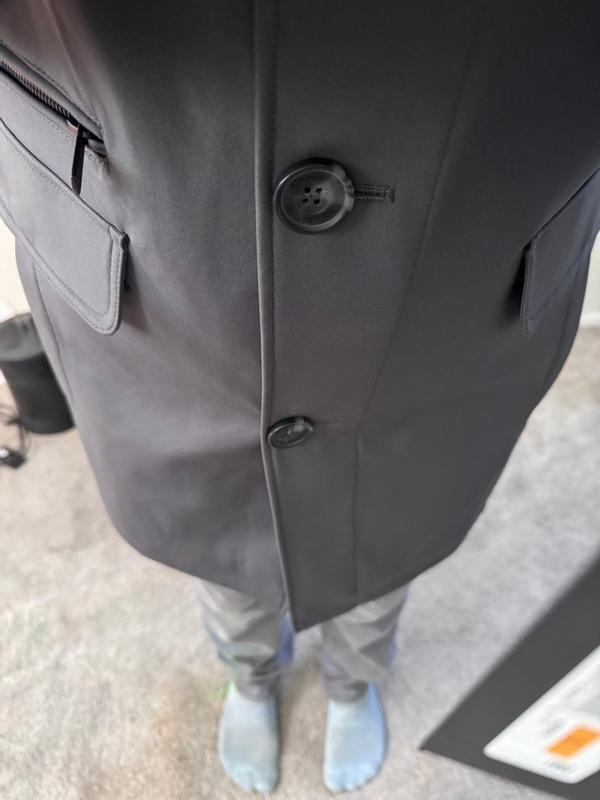 I love the color and fit of this rain coat. It feels a bit heavy but still comfortable. I like the it’s waterproof. Has a nice stylish look that compliments nicely when dressing up.