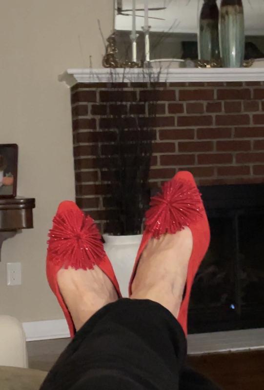 The red flats are so bright and very comfortable, almost like wearing slippers. Can't wait to wear them on Christmas day. Absolutely love them. Highly recommend. Fit is true to size.