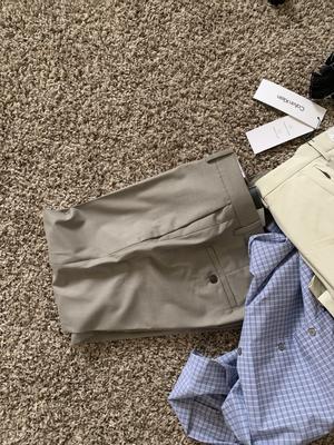 Great quality and fit. Just for reference to help others my husband is 6’4” and about 200lb and the 36x32 fit him really well. We did try the 36 x 34 but it was just too long at the bottom the 36 x 32 hits at the right length if you were wearing dress socks and nice dress shoes and having to sit with your legs crossed they come up a little bit, but it looked better than having pants that looked too long. I wish they made a pant hem size between 32 and 34 long. Overall, a great pant if you can get it on sale we got ours for 3999 on sale and I feel like they wash well if you do a hand wash cycle and hang them to dry and then steam iron them. These pants will hold up for a long time if you take care of them the right way.
