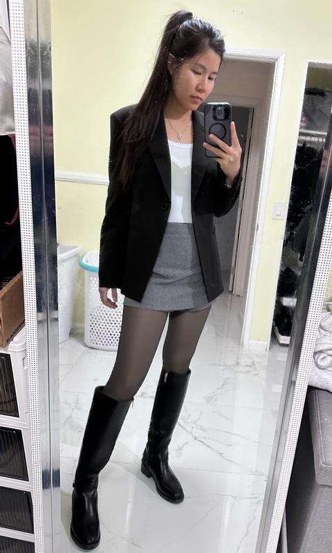 This blazer is cute! It fits well and accentuates your shoulders. It’s easy to throw on and create a professional look. The long length creates a sleek and comfortable look. And it’s thick enough to be a warm jacket for colder months.