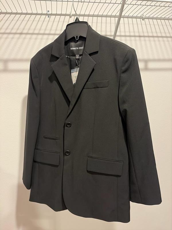 The Kenneth Cole boyfriend-fit blazer is soft, stylish, and effortlessly versatile. The two-button design gives it a polished look while still feeling comfortable and relaxed. It pairs perfectly with blue jeans for a chic everyday outfit or with a dress for a more elevated style. A timeless piece that adds confidence and sophistication to any wardrobe.