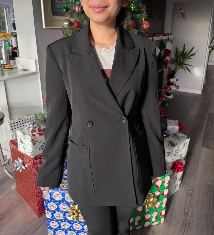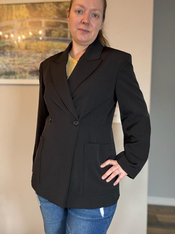 Unfortunately it was a little too small for me to get on, but this blazer is amazing quality. You will be able to wear it with almost anything and for any occasion. The perfect classy staple piece that will last forever. Not to mention ton how soft and sleek it feels.