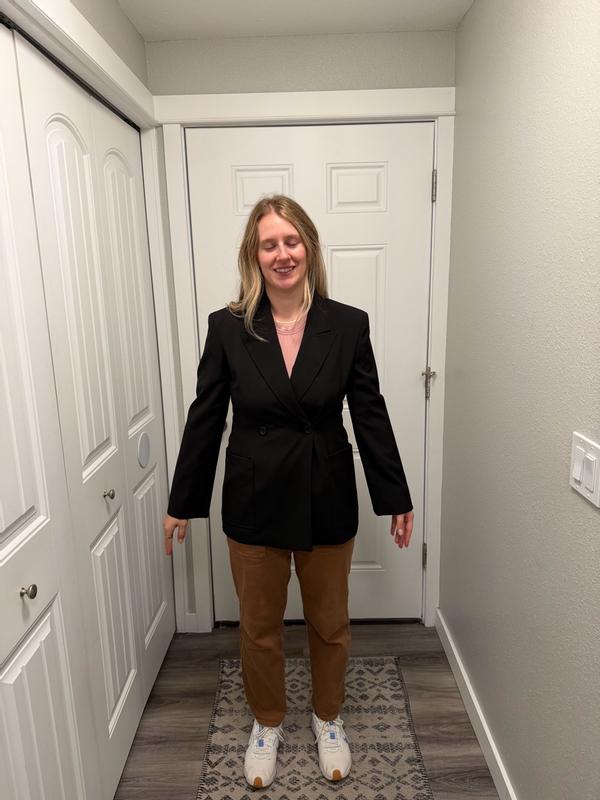 I love the quality of this blazer, it fits well and is comfortable! I don’t love the shoulder pads in it and think they are a little too padded for my liking.