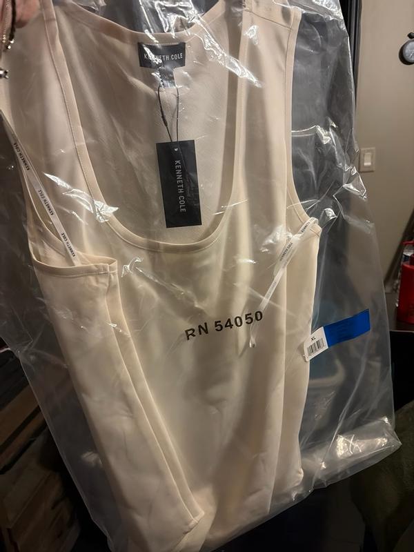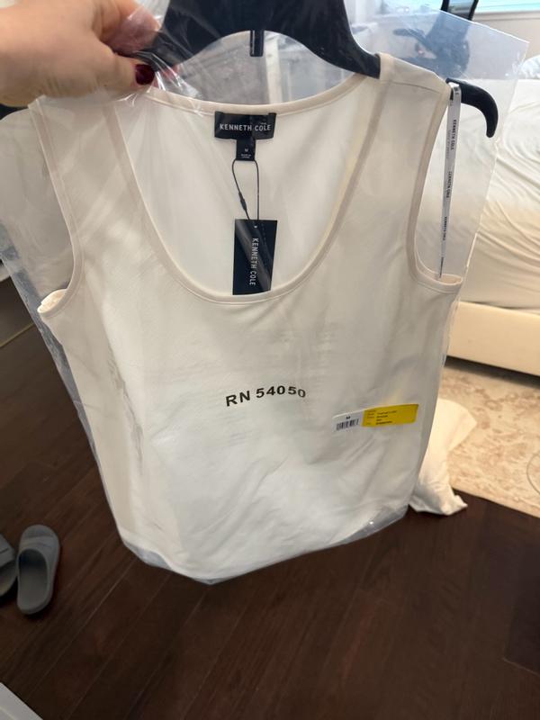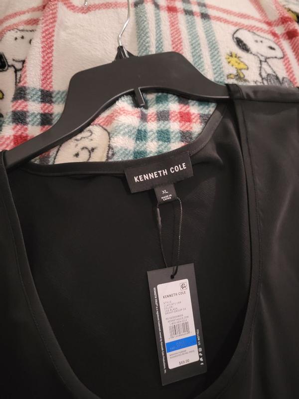 I received this product free from Influenster for my honest opinion. I received the Kenneth Cole Women's sleeveless scoop neck tank. Very nice shirt. It feels like satin material. It gives a flare look at the bottom.
