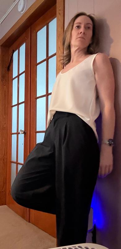 Absolutely love this satin scoop neck tank! It’s my new favorite shirt and goes so well with jeans or trousers and you can dress it up to wear to work or a night out! It’s also very slimming and have received so many compliments! Highly recommend!