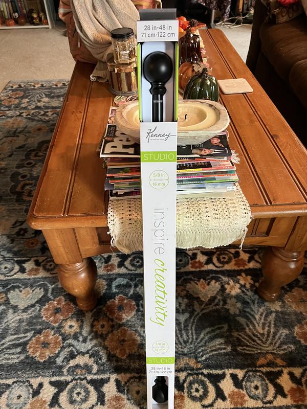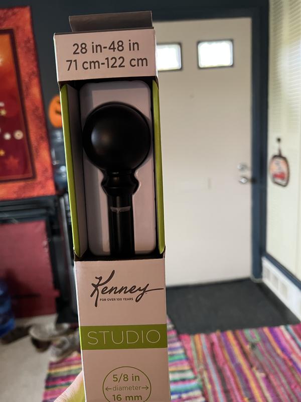 I really like this curtain rod because it is simple and looks great when put together. It spans 28" to 48". It has one telescoping curtain rod with finials, two brackets, screws, drywall anchors, and installation instructions. How simple and complete is that? It holds up well and looks better than a standard rod. I like that it looks so clean being white and different from the other rods I have used. Nice and very well made.
