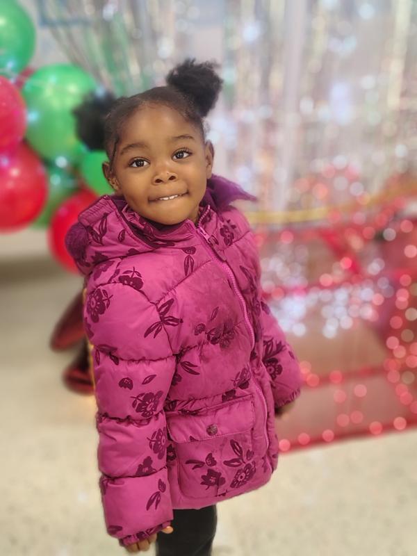 Toddler and Little Girls' Flocked Floral Puffer Jacket