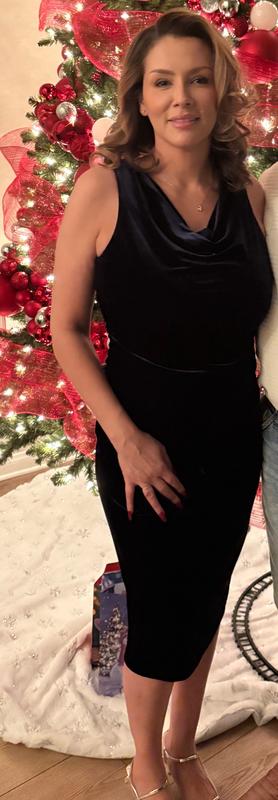 This dress is extremely flattering, comfortable and a great mid calf length. A great addition to my winter party and fancy occasions!
