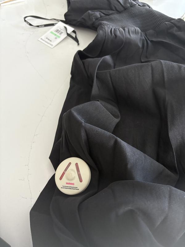 This is the 2nd time that I've ordered a dress online from Macys and it not only comes covered in some type of perfume (perhaps from the employee who fulfills the online orders) but it still has the EAS tag on it (security tag that has to be taken off with a special machine). I can't wear a black dress for my birthday with a giant white security tag still on it (and I ordered it online). So once again, I have to drive to Macys to return it. One time is forgiveable, twice is just neglience and bad customer service. I won't be ordering from Macy's again--it's pretty basic to be want to order clothes that are scent free and that have the security tag removed.