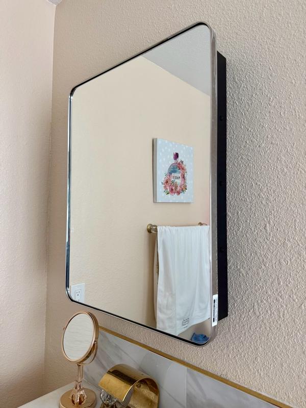 I’m absolutely love my 21-in x 27-in Surface/Recessed Mount Chrome Mirrored Medicine Cabinet. The quality is impressive right out of the box—solid construction, a clean modern look, and that beautiful chrome finish that instantly upgraded my bathroom. The mirrored front is crystal clear. It opens smoothly, closes quietly, and feels very premium. Inside, the shelves are spacious, giving me enough space to store my everyday essentials. Installation was straightforward, and the cabinet feels sturdy and secure once mounted. I love that I can install it either recessed or surface-mounted depending on the look I want. Overall, this cabinet looks amazing, works flawlessly, and adds both functionality and style to the space. Highly recommend to anyone looking for a sleek, dependable upgrade!