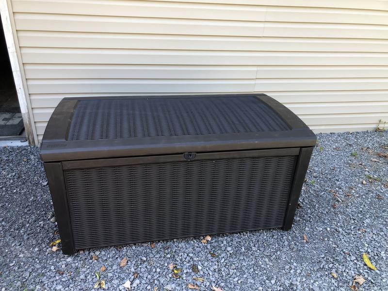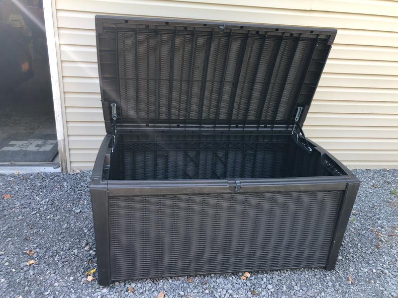 This large storage container is what we were looking for. All the pool “toys” are now in one place. The top is sturdy enough to not be opened by wing gust. Just right weight so opening lid isn’t a struggle. Great we live it.
