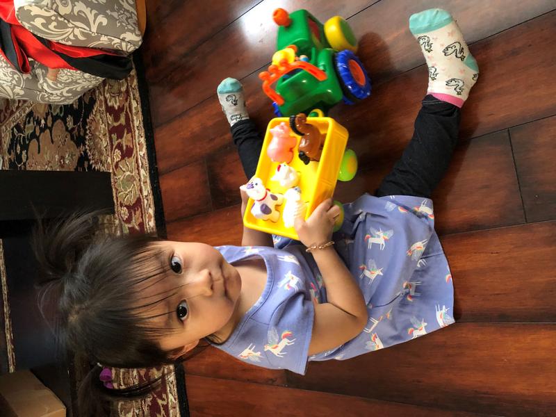My sons have a bunch of farm animals and a little toy farm so this tractor was an amazing addition. They love that it moves with the push of the button and all the sounds are totally tolerable for us parents! It’s well made and lots of fun