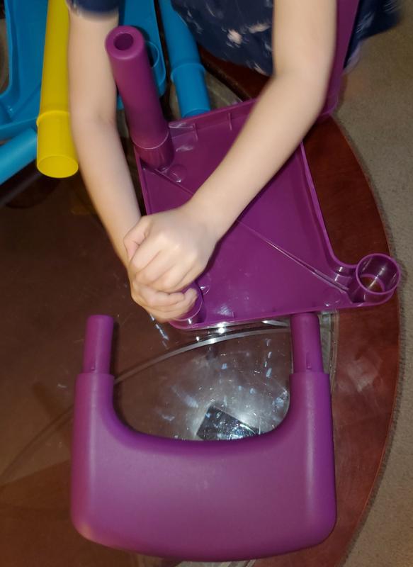 First, i just wanted to say how cute these chairs and table are. It really livens up my little man's room. The table is yellow, and thee is a green, orange, blue and purple chair. The put together was literally the easiest. We took it right out of the box, the pieces snap into each other and tat is it! My son is always trying to roll his cars on the shelf part of our entertainment center, my wife and I were saying how we needed to get him his own table.We got him this and he loves it. As soon as we snapped it together, he went right to it and started rolling his cars on it. Only thing is that my 2 year old is a bit on the shorter side, so he needs help getting in the sitting position on the chair, otherwise, he gets on it himself but backwards and then cannot face the right way.
