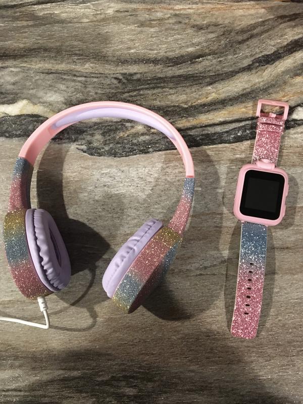 Kid's Pink Sparkle Tpu Strap Smart Watch with Headphones Set 41mm