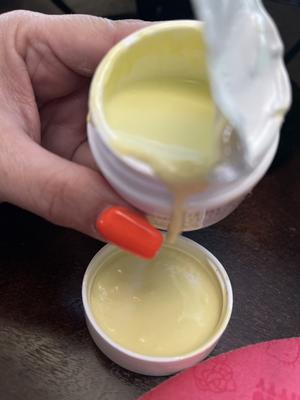 Hello! Thank you for sharing your experience with our Creamy Eye Treatment with Avocado. Our Creamy Eye Treatment with Avocado is a uniquely sensorial and carefully crafted formula. Historically, its formulation has been known to be sensitive to temperature fluctuations during transportation, which can sometimes cause the texture to separate. Please be assured that this does not affect the product's safety, and it can continue to be used. We hope this information helps, and that you continue to enjoy Kiehl's!