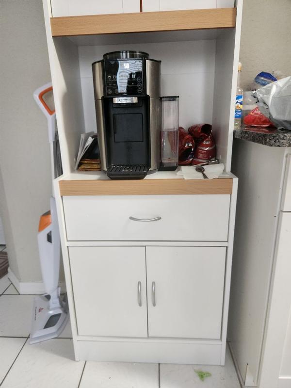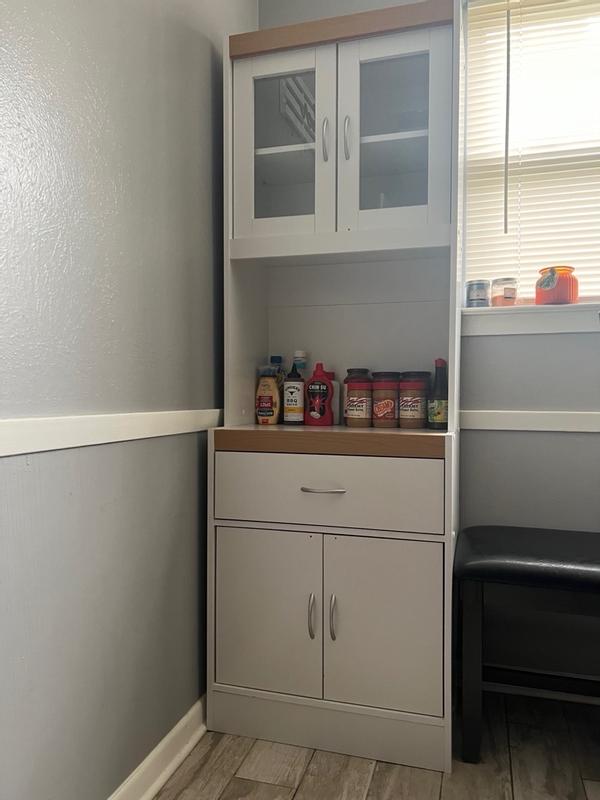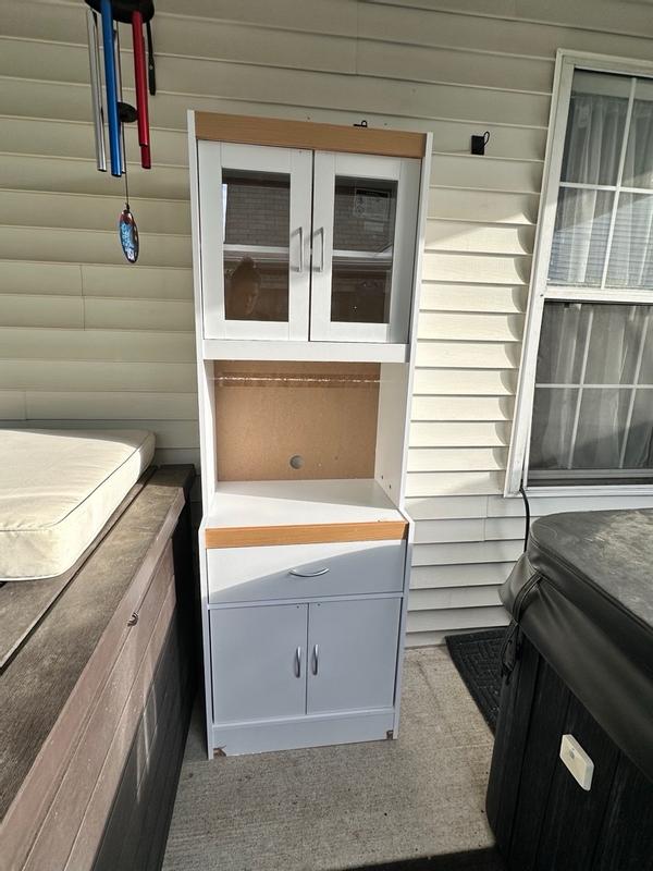 Kitchen Cabinet with Top and Bottom Enclosed Cabinet Space, 1-Drawer, plus Large Open Space for Microwave in White