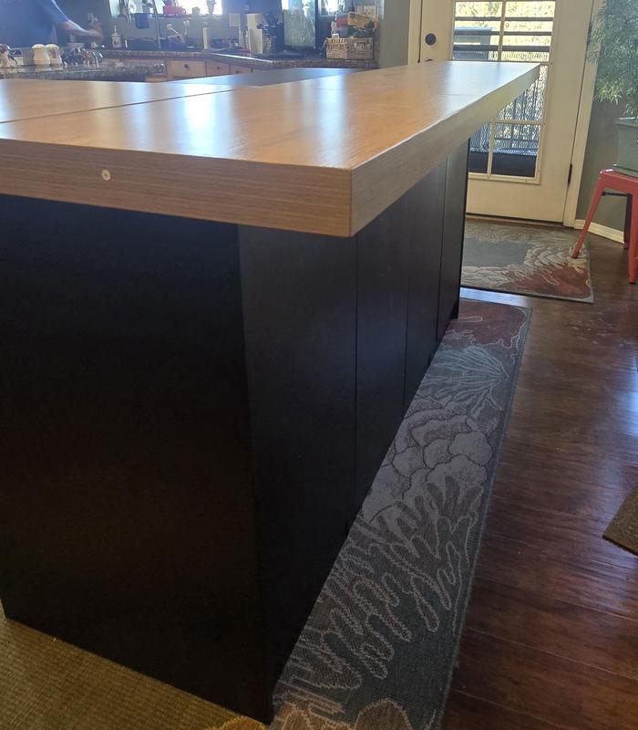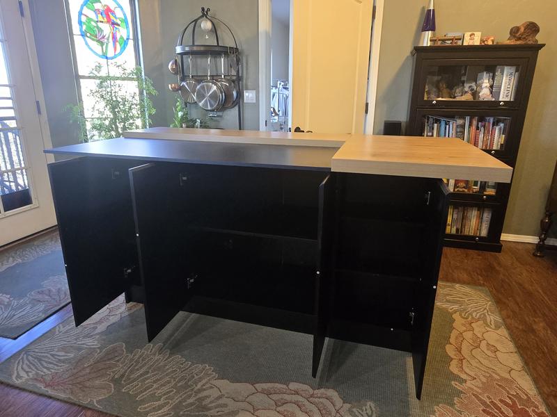 I am really impressed with this island. It is attractive, well built and functional. The top is huge and the entire base is storage. It took my husband three hours to assemble it. He is an experienced cabinet maker and installer. The directions were clear and there were no missing parts. It is really heavy so, as the directions suggest, have it where you want it before you install the top.