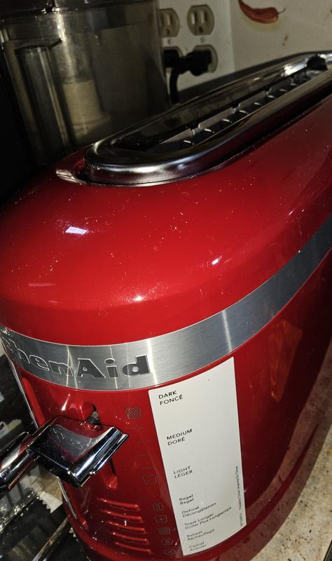 Where to begin? The good - I have limited counter space in my kitchen and was attracted to the footprint of this toaster. It does fit well in my kitchen and I really like the look of it. It adds a nice pop of color. That being said, unless you are using sandwich type bread two slices do not fit in this toaster. More important it does not toast well. I have to put the control almost to the maximum to get a moderately toasted piece of bread. This is so disappointing from KitchenAid, a brand I have long trusted. I guess I'll have to look for a replacement.