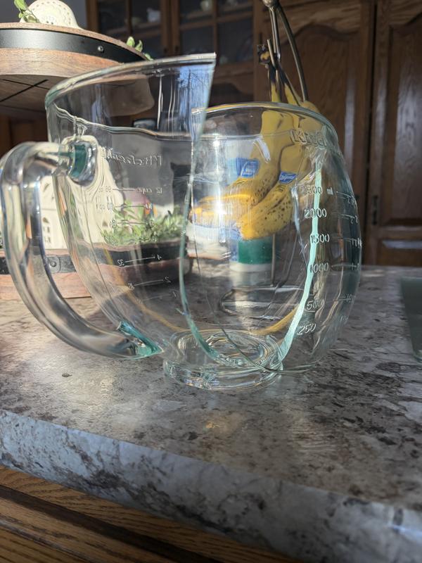 Dear Beth, Thank you for your review. We are sorry to learn of the concern you expressed regarding your KitchenAid Stand Mixer Glass Bowl. We would like to inquire further about your review with you. Please respond to this email address kitchenaid_receipts_usa@kitchenaid.com, with your name, user ID #376366618 used for the review, phone number, street address, zip code, and date of purchase. We look forward to your reply. Thank you. Review Team