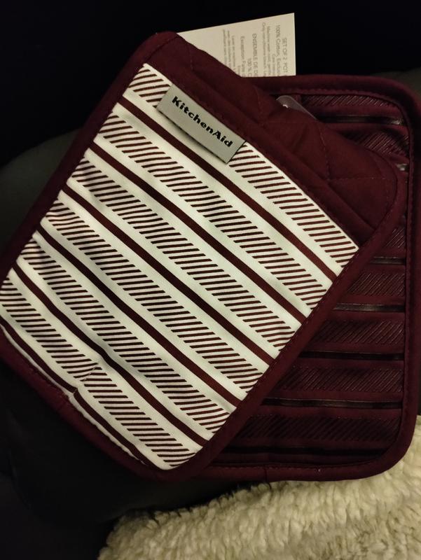 I love my kitchen aid pot holders. The beet color is just perfect. I love that its got the non slip grip to it. N big enough to grab something big or small from oven. You can put your hands inside or hold em like normal. They are machine washable and dryer safe. Now to get more stuff in this color.