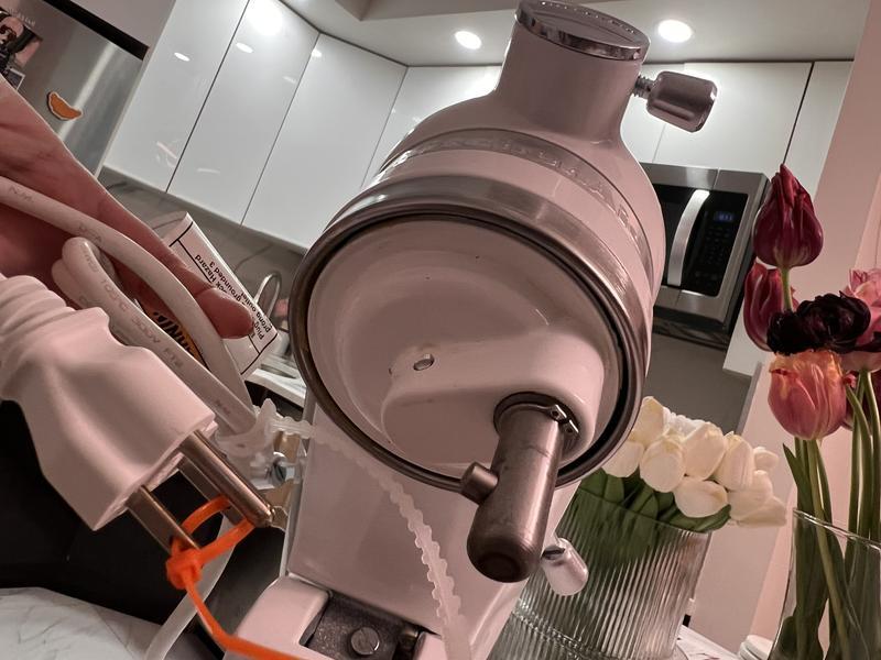 Does this small mixer have the ability to have the ice cream attachment work? Difficult to find an extra bowl and attachments for this mini mixer! Had to go to the kitchen aid site. This one is quite small. Prefer the hand raised model 5 quart mixer to this tilt head style. It can do more! Only recommend if you are expecting a quite small mixer.